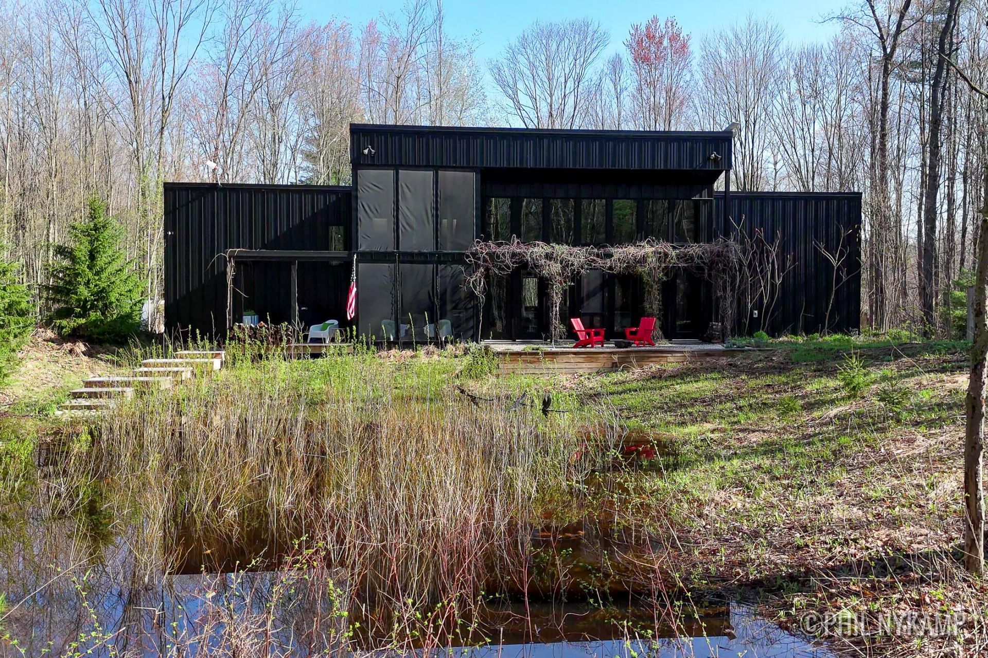 Unique opportunity: two attached homes with independent living quarters for multi-generational living or investment income on 4.5 private wooded acres. These contemporary homes offer unlimited flexibility. Ideal for aging-in-place parents, in-home care, guests, or short- and long-term rentals. Both homes feature radiant floor heating, soaring ceilings, spacious living and kitchen areas, and seamless access to screened-in porches, patios, and decks for year-round relaxation and comfort. Enjoy peaceful surroundings with mature trees and exceptional privacy, all while being just minutes from Lake Michigan beaches, wineries, orchards, restaurants, and shopping. This property combines comfort, versatility, and location single-floor living with barrier-free design perfect for multi-generational living, investment potential, or those seeking space and privacy without sacrificing convenience nearly maintenance-free grounds, professionally designed and installed with native Michigan plants